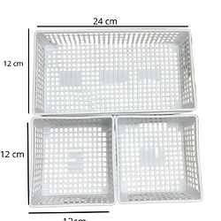 Cesto Organizador Plástico Branco - Kit 3 Peças