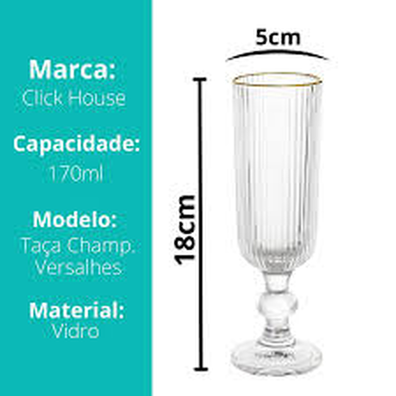 Jogo de Taças Versalhes Gold Champagne 170ml 6 Pecas