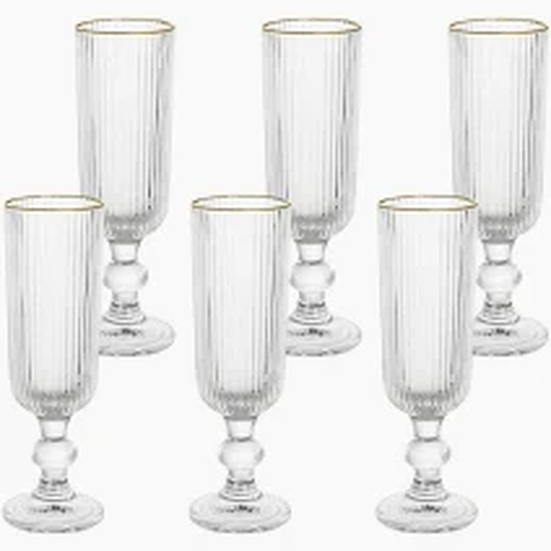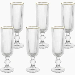 Celebre seus melhores momentos com sofisticação usando o Jogo de 6 Taças para Champanhe em Vidro. Com design elegante em relevo vertical e detalhe dourado na borda, elas são perfeitas para brindar em ocasiões especiais.