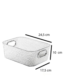 Cesto Organizador Acrílico Texturizado com Alças transparente e fumê– 24,5X17,5X10cm