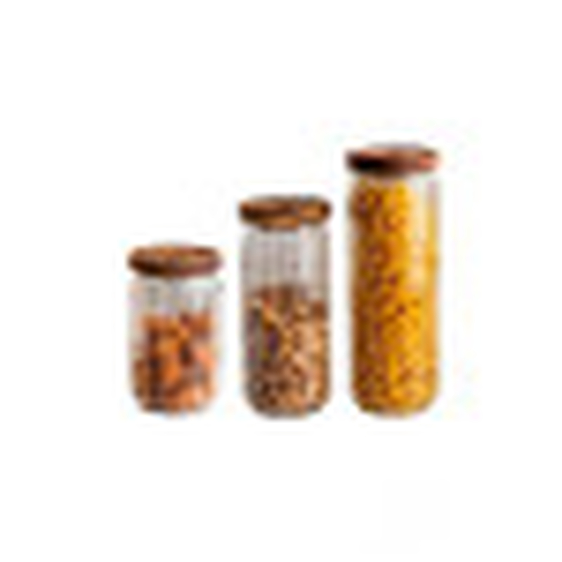 Armazene com estilo: o Pote Genova de 1400ml une a resistência do vidro borossilicato canelado com a beleza e nobreza da madeira de acácia.
