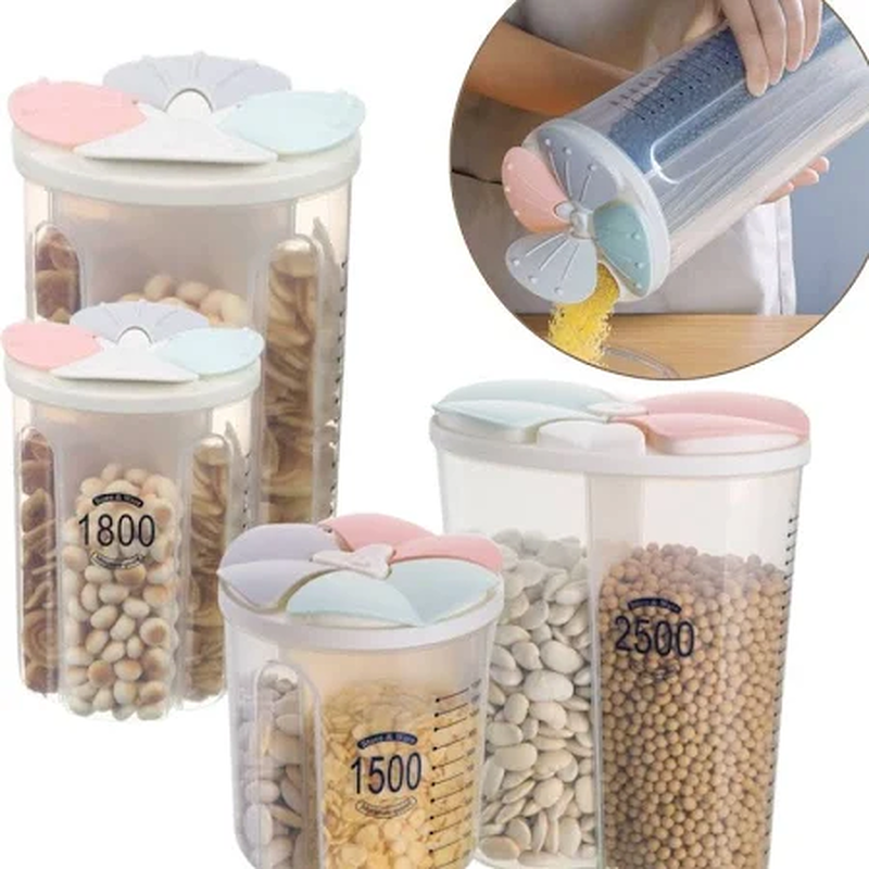 Acabe de vez com a bagunça na cozinha e ganhe mais praticidade na hora de preparar suas refeições! Com quatro divisórias internas, este pote permite armazenar diferentes alimentos em um único recipiente, economizando espaço e organizando a despensa de forma inteligente.