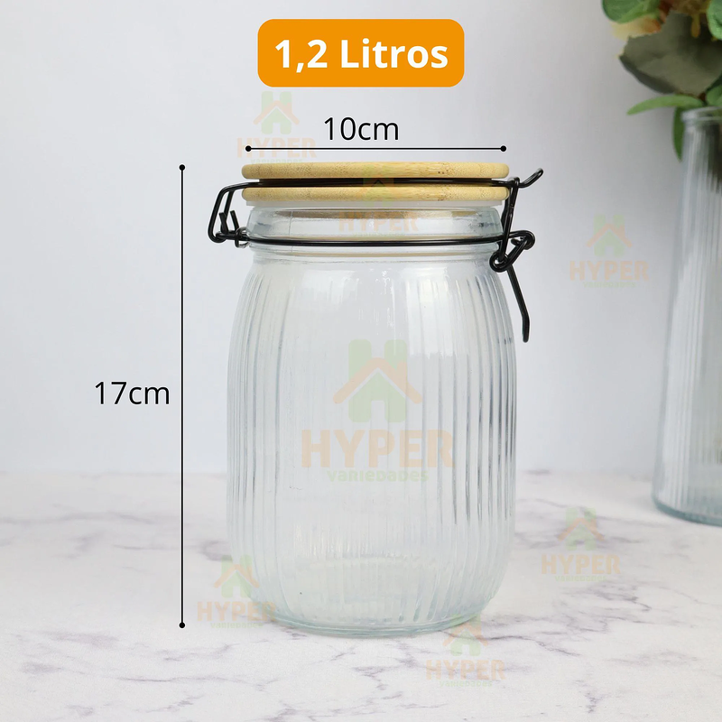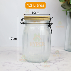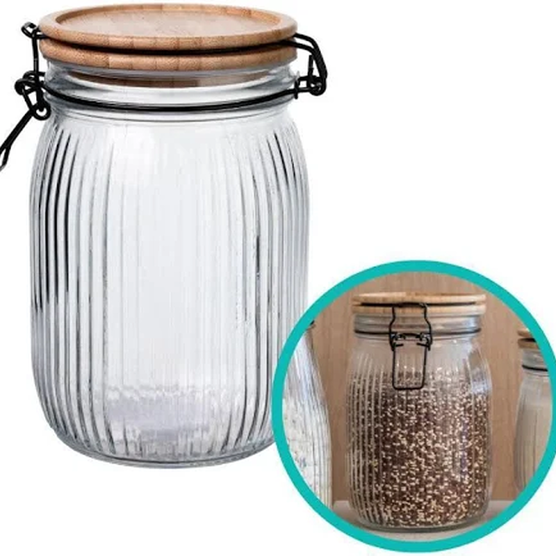 Pote de Vidro com Tampa de Bambu e Fecho Hermético de 1,2 Litros - Organização e Armazenamento