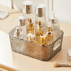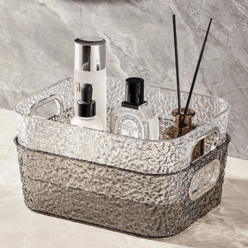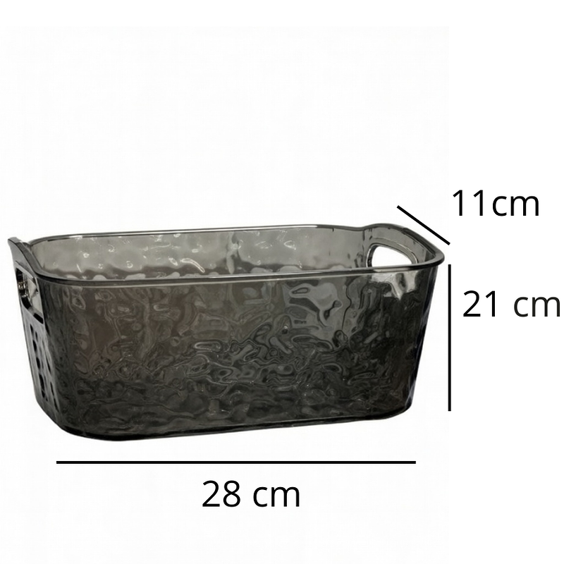 Cesto Organizador Acrílico Texturizado com Alças na cor fumê– 28X21X11cm