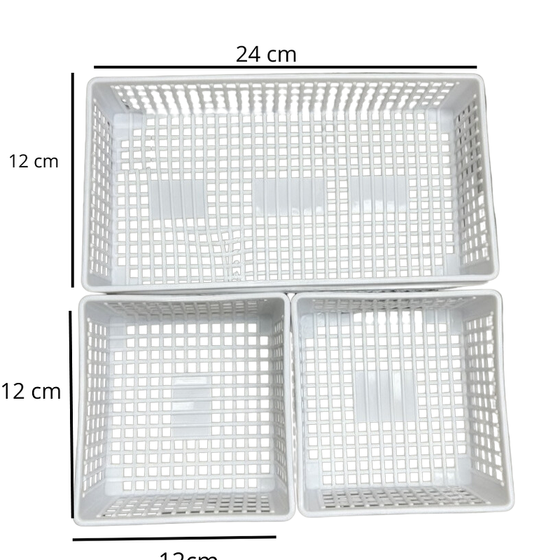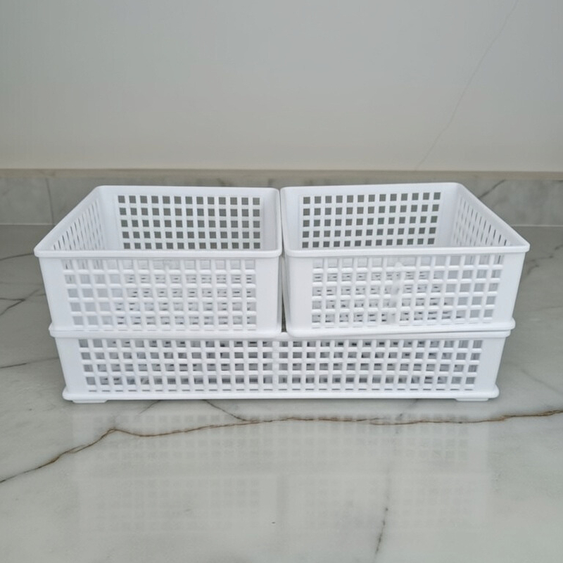 Versáteis e resistentes, são ideais para guardar alimentos, itens de higiene, brinquedos, materiais de escritório e muito mais. Seu design vazado permite ventilação, evitando odores e facilitando a visualização do conteúdo. Perfeitos para cozinha, banheiro, lavanderia ou closet.