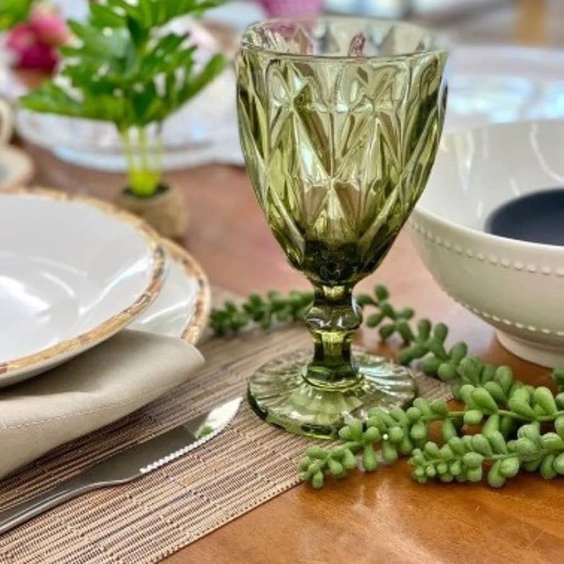 Jogo de Taças Diamond de Vidro Verde 340ml - 6 Pecas