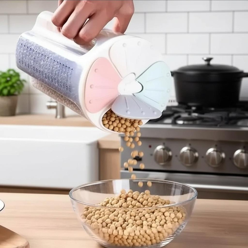 Acabe de vez com a bagunça na cozinha e ganhe mais praticidade na hora de preparar suas refeições! Com quatro divisórias internas, este pote permite armazenar diferentes alimentos em um único recipiente, economizando espaço e organizando a despensa de forma inteligente.